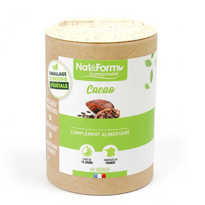 Какаовите зърна са изключително богати на химични съединения, като най-значимите от тях са амини, алкалоиди, танини, мастни киселини и полифеноли, които оказват благоприятно влияние върху организма, подобрявайки настроението и редуцирайки нивата на стрес и тревожност. По този начин релаксират нервната система и тонизират тялото. Флавоноидите в състава подкрепят дейността на сърдечно-съдовата система, предпазвайки сърцето и кръвоносните съдове от дегенеративни промени. Какаовите зърна подпомагат борбата със свободните радикали и предпазват клетките от разпад. Регулират нивата на кръвната захар и балансират кръвното налягане. Освен това какаото съдържа витамини, главно от група В, които се борят с възпаленията и инфекциите. То съдейства за работата на дихателната система, намалявайки симптомите на астма и бронхит.