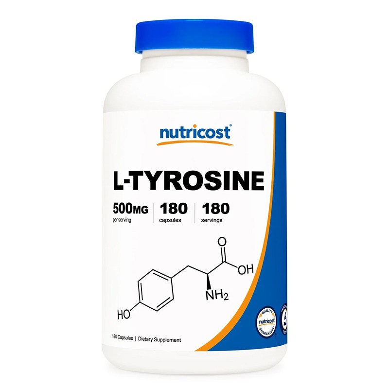 L-Tyrosine на Nutricost е хранителна добавка, която спомага за постигане на психоемоционален баланс и подобряване на настроението. L-тирозинът е неесенциална аминокиселина, необходима за протеиновия синтез, перкусор на тироксин и меланин и невротрансмитерите допамин и норепинефрин, които играят важна роля за концентрацията, тонуса и неврологичното здраве. При остър стрес, като температурни промени и липса на сън, L-тирозин може да предотврати изчерпването на антистрес катехоламини като допамин.