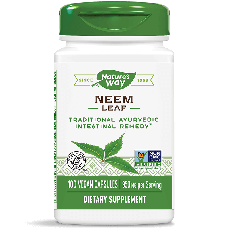 Екстракт от изсушените и стрити листа на растението Нийм, което има хилядолетна история на употреба в природолечението и е сред основните билки, използвани в Аюрведа. Листата от нийм притежават богат химичен състав – съдържат над 140 растителни съединения с мощен терапевтичен ефект срещу широк спектър здравословни проблеми. Най-значимо е въздействието им върху храносмилателната система, черния дроб и имунитета. Прилагат се още като антимикробно и антипаразитно средство за профилактика и терапия на различни инфекции.