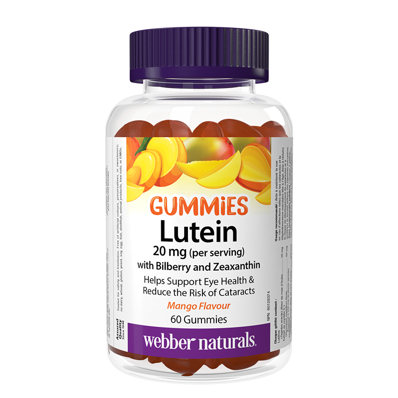 Лутеинът и зеаксантинът са каротеноидни пигменти, които се съдържат във високи нива в макулата и ретината на очите. Допълнителният прием на активните вещества поддържа нивата им високи и допринася за подобряване състоянието на очите. Лутеинът и зеаксантинът в този продукт са от цвят от невен (Tagetes erecta). За допълнителна подкрепа на действието на невена, към него е добавен екстракт от плод на черна боровинка (Vaccinium myrtillus). Желираните таблетки са с вкус на манго и за направата им е използван подходящ за вегани пектин.