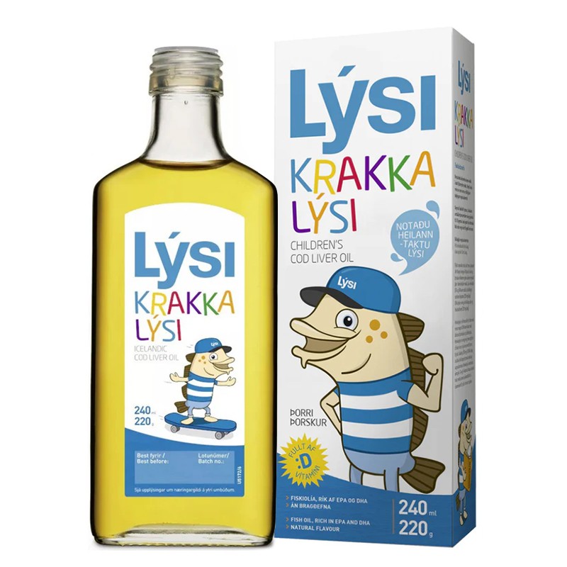 Children’s Cod Liver Oil Lýsi Омега-3 за деца и възрастни 2390 mg (масло от черен дроб на исландска риба треска) Течна формула, 240 ml е хранителна добавка за деца. Тя е подходяща както в общата профилактика на здравето от ранна възраст до и включително тийендъжрските години, така и в помощ на определен терапии. Продуктът е разработен от водещ производител на рибено масло в Европа – Lysi.
