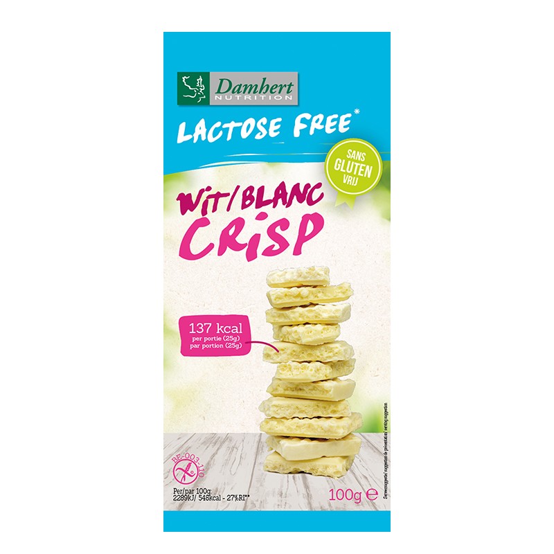 Белгийският производител Damhert Nutrition предлага алтернативни хранителни продукти без лактоза и глутен в състава им, много здравословни и с гарантирано високо качество. Такъв продукт е и оризовият крисп с бял шоколад. Идеален вариант за хора с лактозна или глутенова непоносимост.