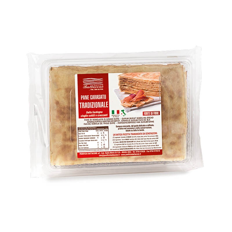 Той е хрупкав, деликатен, ароматен, събрал вкуса и традициите на Средиземноморието – Pane Carasatu Tradizionale е един от кулинарните символи на Сардиния и рецептата му се предава от поколения. Този нетипично тънък, подобен на кора или крекер хляб, някога е бил основна храна за овчарите на острова – домакините ги изпращали с огромни платнени торби от него. По време на пашата на овцете мъжете засищали глада си с Pane Carasatu, като го топели в мляко, хапвали го, поръсен със зехтин, леко навлажнен, добавяли овче сирене „Пекорино“ и маслини. С днешна дата, в едни по-добри и охолни времена, Pane Carasatu се гарнира начупен с всевъзможни неща – прошуто крудо, колбаси, различни сирена, разядки, авокадо, домати…Местните го ценят, защото ги свързва с традицията, а многобройните туристи преоткриват магията му по време на вечерните аперитиви в барове и ресторанти.