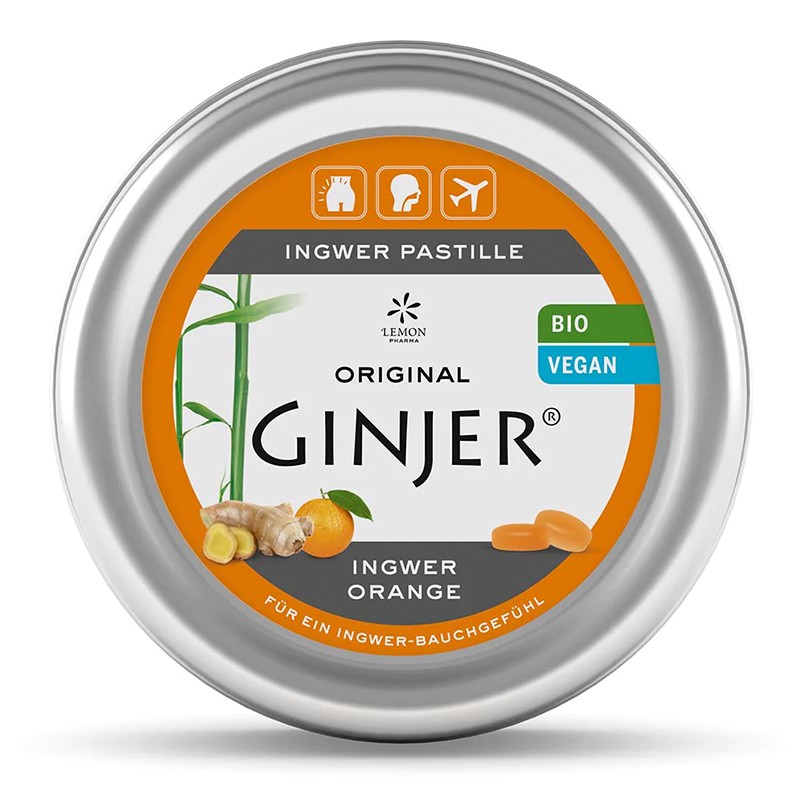 Пастилите осигуряват дълготраен приятен вкус, освежават дъха и действат благотворно на зъбите, венците и гърлото. Основата на меките пастили е натурална акациева смола (гума арабика). Акациевата смола свързва активните вещества и аромати на джинджифила и осигурява дълготраен вкус, като постепенно ги освобождава върху езика. Арабската гума се абсорбира бавно от храносмилателната система и след това се метаболизира. Джинджифиловият екстракт, използван в пастилите на Lemon Pharma, е произведен под високо налягане с естествен диоксид. Това гарантира чистотата на джинджифила (без остатъци от разтворители, тежки метали и неорганични соли) и запазване на ценните полезни вещества гингероли и шогаоли. Портокаловият вкус намалява пикантността на джинджифила и продуктът е еднакво подходящи за възрастни и деца. Пастилите се препоръчват като естествено средство срещу леко гадене в ранна бременност и по време на пътуване. Продуктите GINJER ® са 100% натурални и без известни странични ефекти.