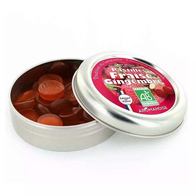 Джинджифилът е едно от най-известните лечебни растения. Коренът му не е само полезен, но и вкусен, поради което е и част от кулинарията. Придава богат пикантен вкус на солени ястия и сладкиши. Преди повече от две хиляди години древните китайци са приготвяли от него чай за лечение на настинки. Джинджифилът е чудесна помощ при гадене. Сред активните вещества, съдържащи се в това растение, най-голям дял имат витамините С, В1, В2, аминокиселините и минералите. Ползите от джинджифила се допълват от действието на концентрирания натурален лимонов сок, участващ в създаването на този продукт на Aromandise. Лимонът има изключително ободряващ аромат. Благодарение на цитрусовите лимонови нотки и ягодовата сладост, вкусът на пастилите с джинджифил става още по-изразен. Дори претенциозните гастрономи харесват тази комбинация от вкусове, а почитателите на народните методи на лечение знаят, че смесването на джинджифил с лимон укрепва имунната система, облекчава симптомите на грип и има редица други полезни свойства.