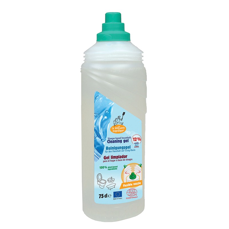 Gel nettoyant à base de vinaigre 12° – Почистващ гел на оцетна основа е органичен почистващ препарат под формата на гел. Има киселинност от 12%, притежава антибактериални свойства и ефективно почиства всякакви повърхности в дома като подове, плотове, мивки, ламперии, дръжки, мебели и др.