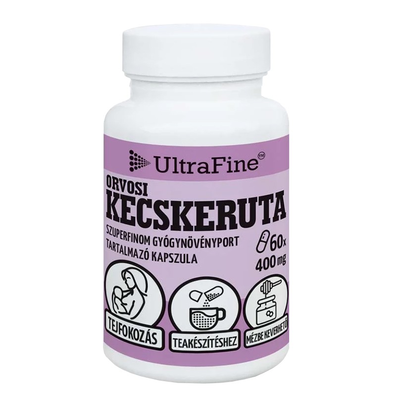 Надземните части на растението традиционно се използват в билколечението за облекчаване на заболявания като диабет, панкреатит и при храносмилателни смущения, особено хроничен запек, причинен от липса на храносмилателни ензими. Супер фините прахове в капсули SonicFine ®, какъвто е и този продукт, разтварят флавоноидите и другите активни съставки три пъти по-бързо и в по-големи количества от традиционните билкови препарати. Така бионаличността се увеличава двойно, а биологичната активност – до 8 пъти. Внимателната обработка значително увеличава количеството налични антиоксиданти. Прахът в капсулите може да се смесва с всякакви течности: от него може да се приготви чай или да се добави към мед, шейкове, смутита, животински млека и растителните им алтернативи. Капсулите са със 100% съдържание на активни съставки от висококачествени растения, без добавки и подобрители. Съдържанието на 1 капсула е еквивалентно на около 2 грама от билката лечебен жаблек (Galega officinalis).