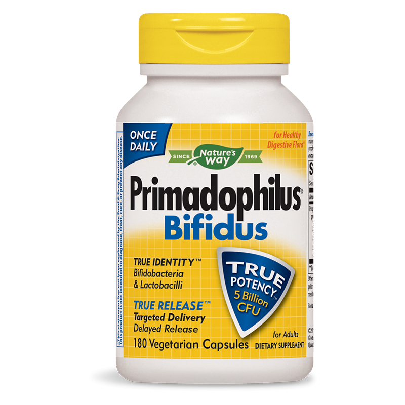 Продуктът Примадофилус бифидус 5 млрд. активни пробиотици на американската компания Nature’s Way предлага отлична пробиотична грижа за стомашно-чревния тракт. Примадофилус бифидус е част от специализираната серия пробиотици на Nature’s Way – PRIMADOPHILUS, която включва пробиотични продукти за възрастни и деца с екстра качество и гарантирана ефикасност!