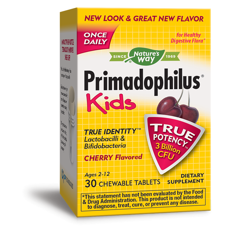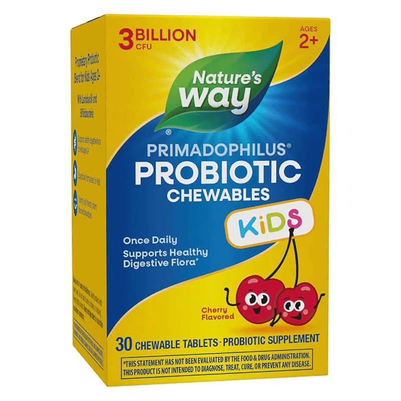 Пробиотик Примадофилус Кидс – за деца (2-12 г.), 3 млрд. активни пробиотици, 30 дъвчащи таблетки с вкус на череша