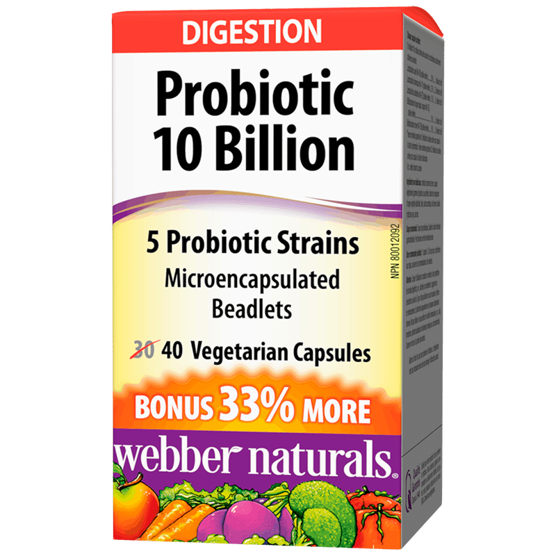 Висококачественият пробиотик на Webber Naturals съдържа 10 милиарда активни клетки в капсула. Тази мощна доза възстановява баланса на чревния микробиом и облекчава различни стомашно-чревни нарушения.