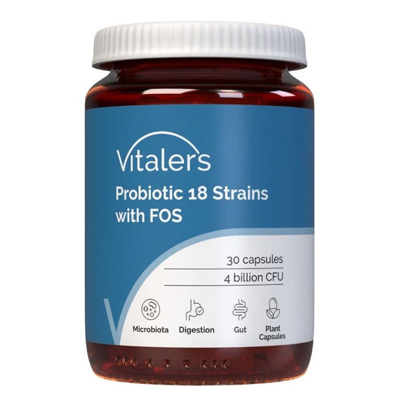 Пробиотик 18 щама + пребиотик FOS – Комплексна грижа за червата и имунитета, 4 млрд. CFU, 30 капсули