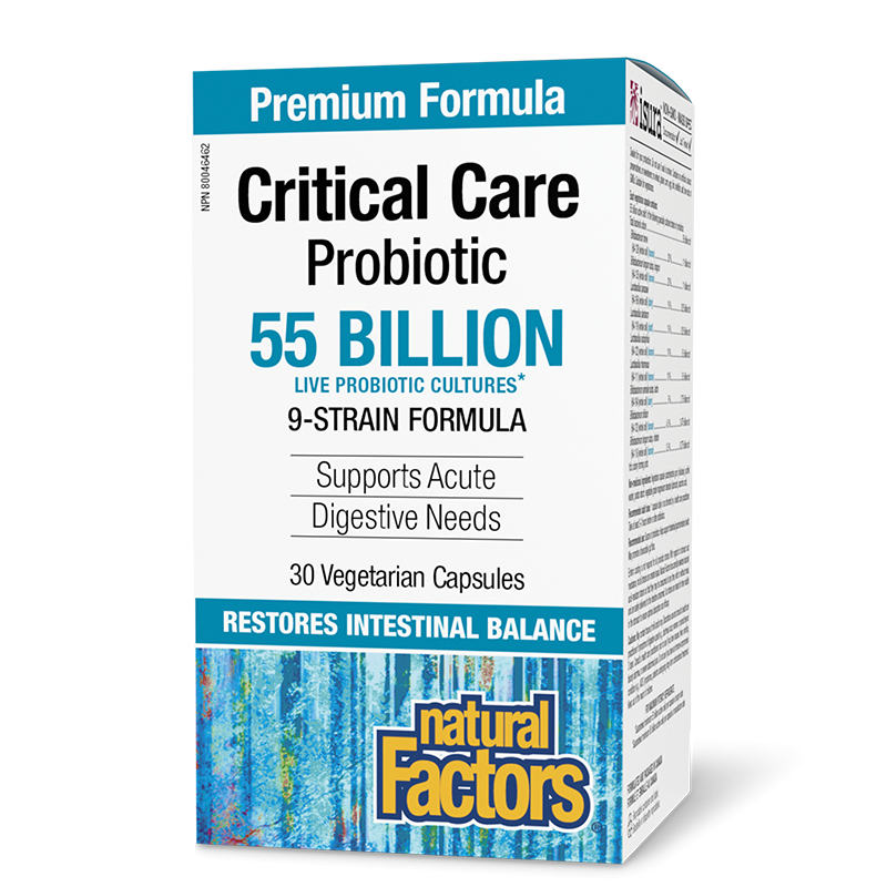 Critical Care Probiotic е патентована смес от 9 стомашно-устойчиви щама с мощна концентрация на 55 милиарда активни клетки, които работят в синхрон за максимална активност и ефикасност. Щамовете са бифидобактерии и лактобацили за целенасочена подкрепа, както на тънките, така и на дебелите черва. Комплексът възстановява полезните бактерии, изгубени при употребата на антибиотици, стрес, диети, пътуване и стомашно-чревни разстройства. Тази формула предлага значителна защита от бактериална инфекция, свръхрастеж на дрожди и храносмилателен дискомфорт. Патентованата синергична смес съдържа: Bifidobacterium breve, Bifidobacterium longum, Lactobacillus paracasei, Lactobacillus plantarum, Lactobacillus acidophilus, Lactobacillus rhamnosus, Bifidobacterium lactis, Bifidobacterium bifidum, Bifidobacterium infantis. Внимателно подбраните естествено устойчиви на киселини щамове, могат да се консумират по всяко време, със или без храна и да бъдат безопасно доставени до червата невредими. Киселинната устойчивост е гарантирана с използването на технологията Bio-Support. Щамовете са тествани за техните силни страни и жизнеспособност в стомаха, за да се гарантира оптимална абсорбция и ефикасност. Така Critical Care Probiotic поддържа положителен баланс на микрофлората, помага за изграждането на силна имунна система и храносмилателна функция. Насърчава здравата чревна флора и спомага за създаването на благоприятна среда за усвояване на хранителните вещества. Съвместимостта на активните клетки е потвърдена с ДНК картографиране на всеки щам за гарантирана идентичност.