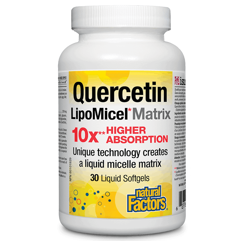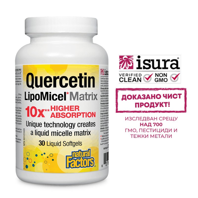 Продуктът Quercetin LipoMicel Matrix съдържа липозомен кверцетин с десетократно по-висока степен на абсорбция и по-добри фармакокинетични показатели от обикновения кверцетин.