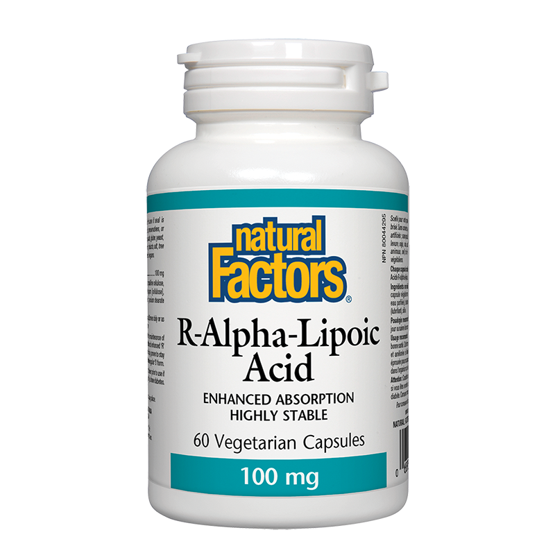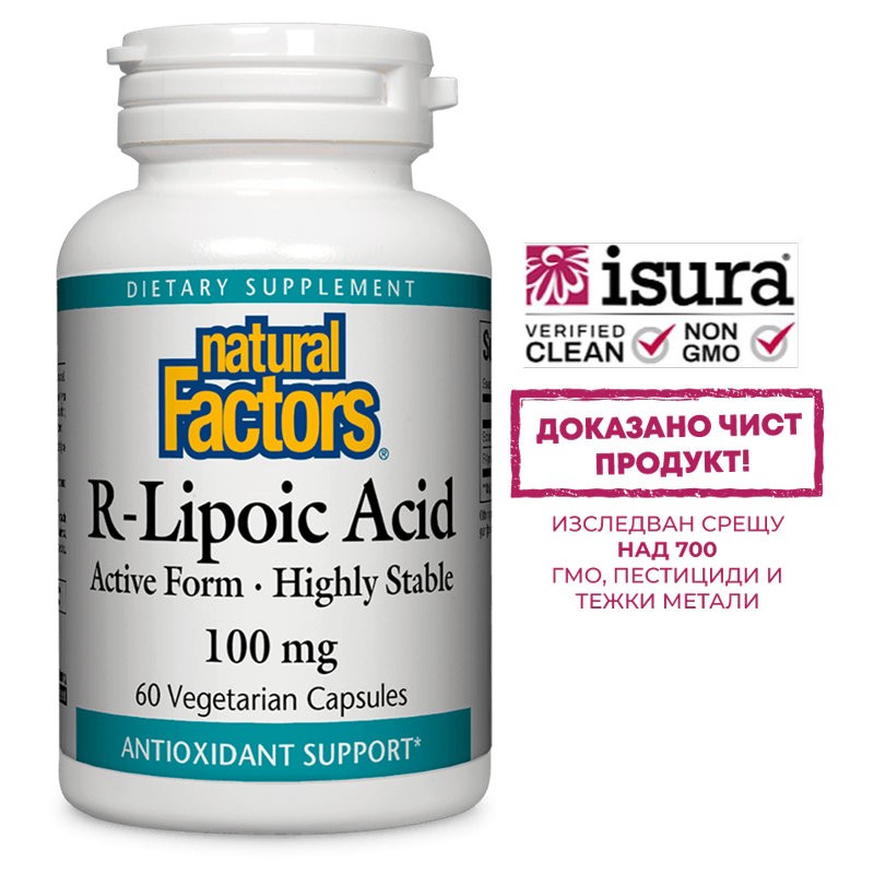 Продуктът на канадската компания Natural Factors е източник на натурална, с висока биологична активност алфа-липоева киселина в нейната R-форма.