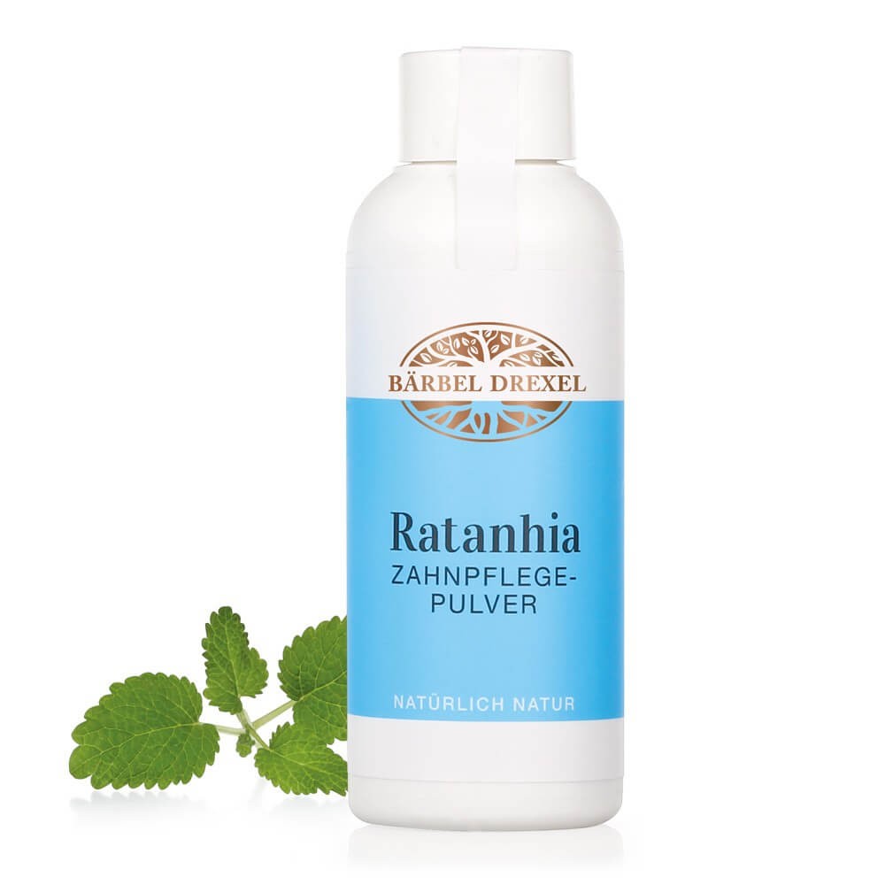 Ratanhia Zahnpflegepulver е натурална пудра за избелване на зъбите и поддържане хигиената на устната кухина. Съдържа екстракт от корен на ратания, екстракт от стевия, масло от мента и други природни съставки с мощно действие срещу образуването на налепи и петна по зъбните повърхности.