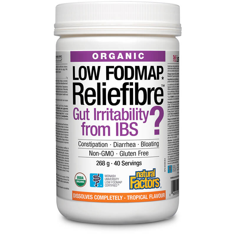 Reliefibre™ е сертифициран, клинично признат low-FODMAP продукт. Съдържа силно разтворими, органик диетични фибри, подходящи за хора със синдром на раздразненото дебело черво.