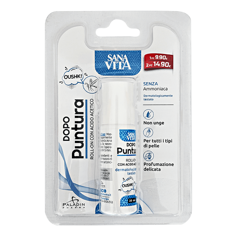 Sanavita Dopo puntura roll on Paladin Pharma е деликатен рол он, който помага за облекчаване на болката и дискомфорта след ухапване, ужилване или опарване от животни и растения