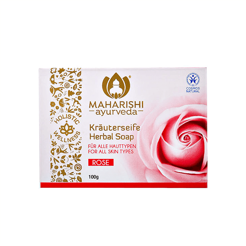 Сапунът с розово масло на Maharishi Ayurveda съдържа само растителни съставки – билки и етерични масла, както и богата палитра от аромати, извлечени по традиционни технологии от биологично чисти полезни за тялото и кожата видове.