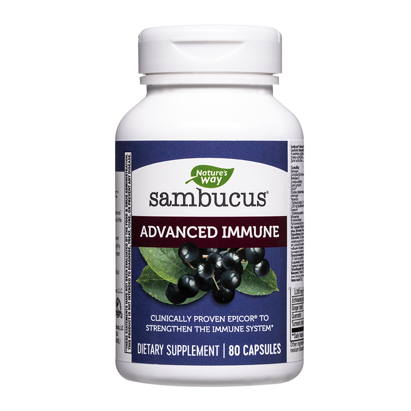 Понякога само да се поддържа имунната функция не е достатъчно – обстоятелствата налагат предприемането на доста по-сериозни мерки. Sambucus Advanced Immune на Nature’s Way е предназначена именно за такива случаи. Тя съдържа клинично изпитания имуностимулант EpiCor®, който активира имунните клетки до два часа, ускорявайки максимално отговора на тялото на патогенните агенти. В състава ѝ влизат още доказали качествата си растителни екстракти, витамини и биохимикали.