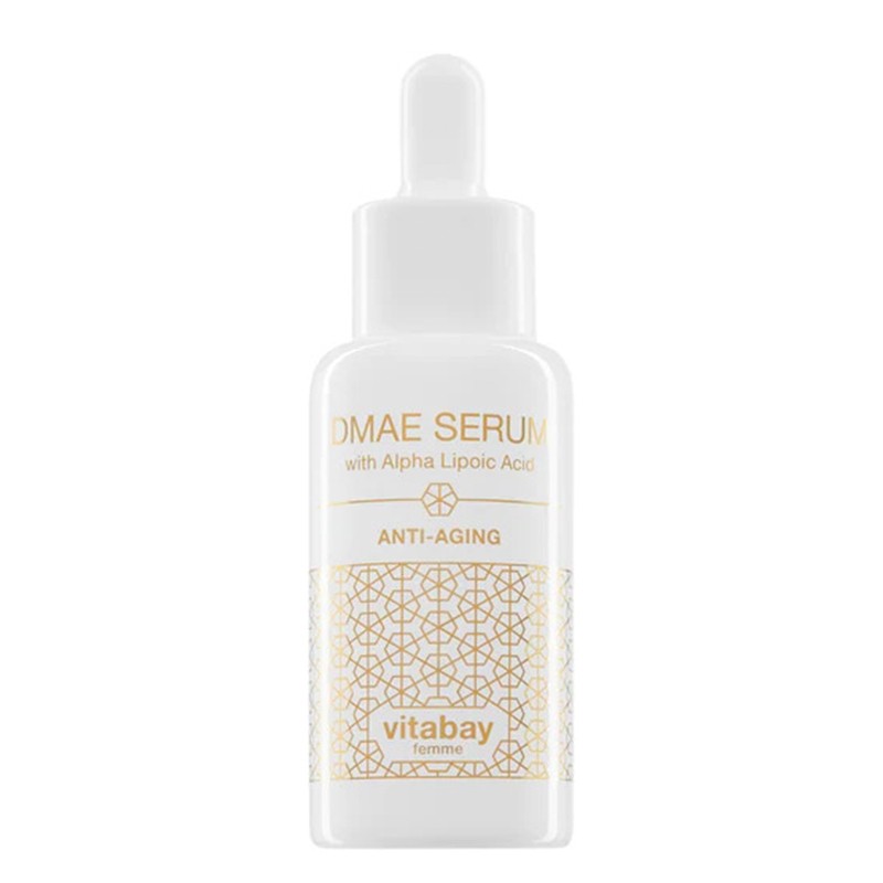 Формулата DMAE Serum на марката VItabay е създадена специално за противодействие на признаците на стареене на кожата и е особено ефективна в запазването и възстановяването на нейната еластичност. Освен това тя укрепва мускулните влакна и възвръща естествения им тонус. Мощното действие на серума се дължи на изключителните здравословни ефекти на отделните компоненти: