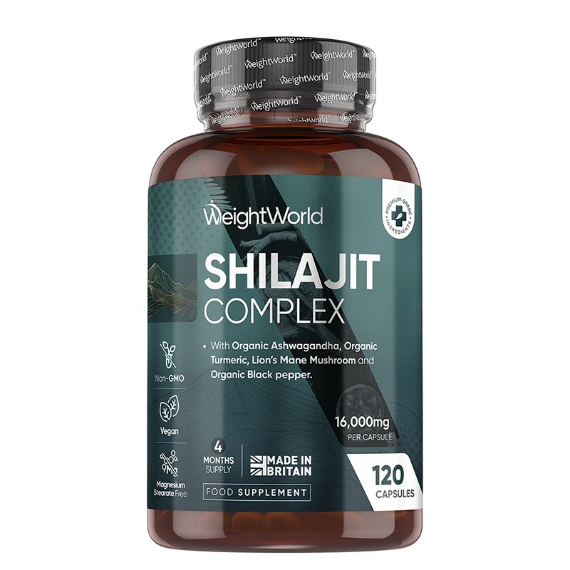 Шилажит комплекс (с ашваганда, куркума, лъвска грива и черен пипер) е хранителна добавка, която подпомага нормалния енергиен баланс и тонус на организма.