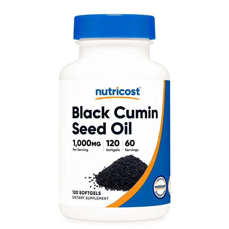 Този продукт на Nutricost съдържа студено пресовано масло от черен кимион. Семената се обработват при температура не по-висока от 60-80 градуса за запазване на богатството от Омега мастни киселини, витамини, минерали (фосфор, калий, магнезий и калций) и антиоксидантите нигелон и тимохинон. Тимохинонът има силен противовъзпалителен ефект, повишава общия тонус и подобрява работоспособността. Маслото от черен кимион (Nigella sativa), може да помогне за намаляване на алергичните реакции и за нормализиране на теглото В опаковката има 120 лесни за преглъщане софтгел капсули с благоприятен ефект върху общото здравословно състояние.
