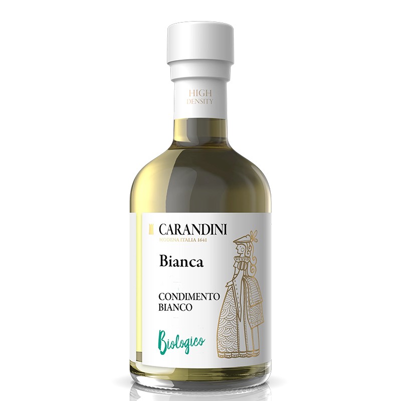 Bianca Condimento Bianco Biologico е натурален продукт от италианската компания Carandini, базиран на оригинална рецепта от органични суровини от устойчиво био земеделие. Той е ярък символ на дългогодишните семейни традиции на фамилия Карандини, които датират от 1641 г. Съдържа висококачествен бял оцет и концентрирана гроздова мъст и се характеризира с деликатен вкус, осигуряващ широко поле на изява в кухнята.
