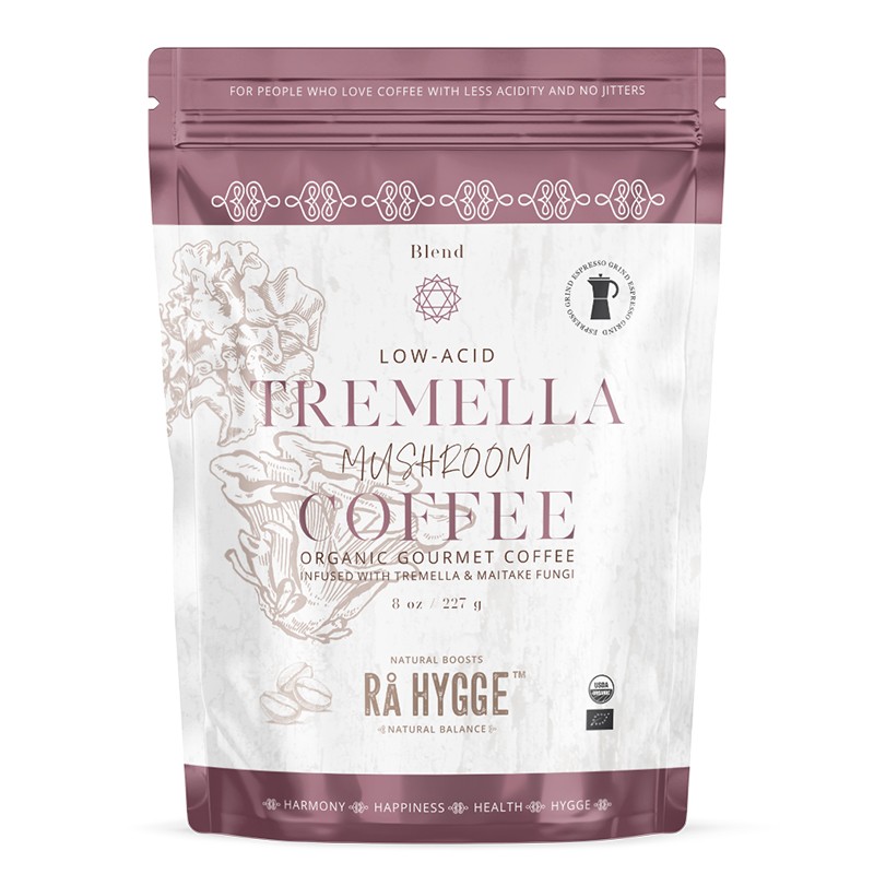 Смляното кафе еспресо Арабика с екстракт от гъбите Тремела и Майтаке е чудесно предложение на Rå Hygge за приготвяне на гурме напитка с богат и плътен вкус.