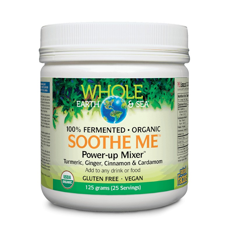 Soothe Me™ Power-up Mixer™ Turmeric, Ginger, Cinnamon & Cardamom Whole Earth & Sea™ 100% Fermented, Organic / Балансирана формула с куркума, джинджифил, канела, кардамон – мощен антиоксидант спомагащ за защита на клетките от оксидативен стрес.