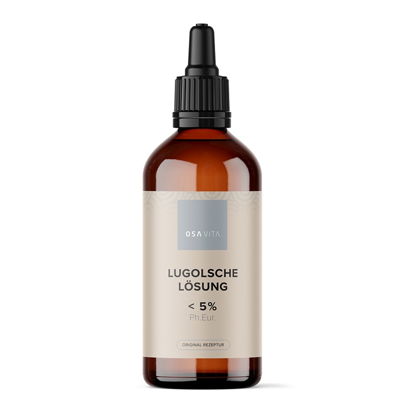 Висок клас луголов разтвор на немската компания Osavita. Състои се от 5% йод (I₂) и 10% калиев йодид (KI), разтворени в 85% вода, пречистена чрез обратна осмоза. Произведен и бутилиран в Германия при най-строги хигиенни условия и стандарти за безопасност, и съгласно немските контролни процедури, включително EN ISO 9001. Всички суровини в продукта са тествани и отговарят на строгите изисквания на Европейската фармакопея (European Pharmacopoeia). Не съдържа консерванти и химически добавки. Предлага се в бутилка от тъмно стъкло, която предпазва разтвора от светлината, в допълнение с практична стъклена пипета за прецизно и лесно дозиране.