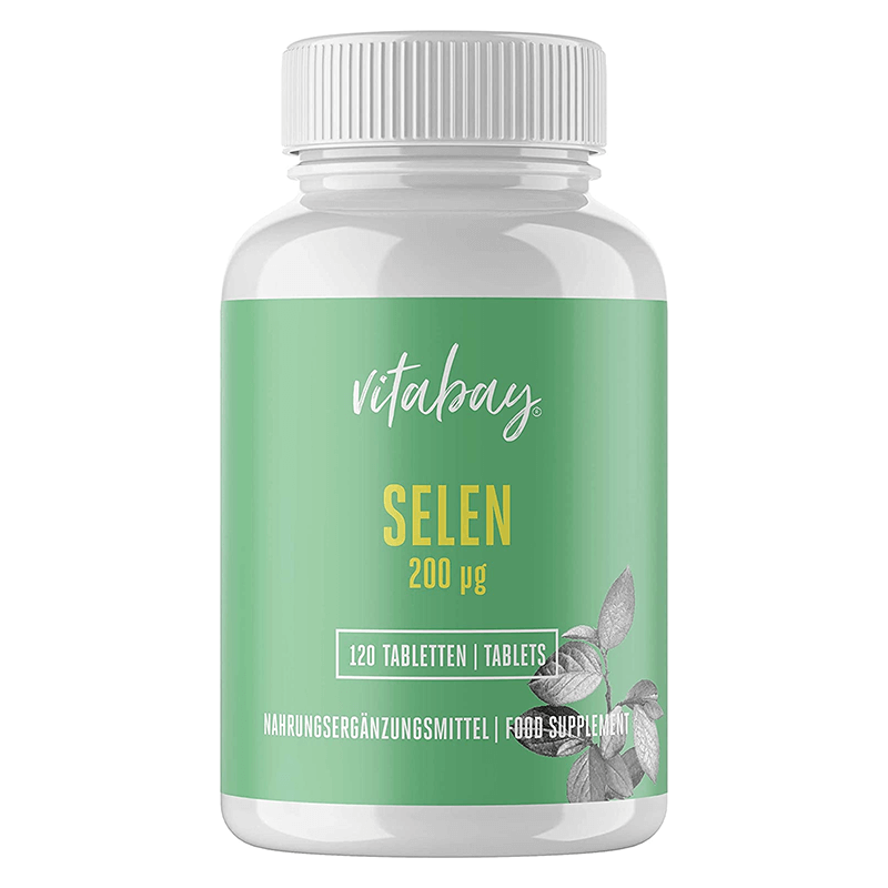 Селен на Vitabay осигурява 200 mcg селен на дневна консумация (една таблетка). Селенът е основен микроелемент за всички форми на живот, като най-важните му свойства са свързани с подкрепа на имунната система и с работата на щитовидната жлеза. Няма нито един орган в човешкото тяло, който да не използва селен. Той активира гена p53, важен за детоксикацията в клетките и неутрализирането на свободните радикали. Участва в метаболизма на протеини и нуклеинови киселини. Влиза в състава на ензими и хормони, участва в имунните реакции и регенерацията. Протеините, съдържащи селен, образуват костната и хрущялната тъкан, подпомагат работата на скелетната и гладката мускулатура и контролират хормоналния баланс. Количеството на селен, което може да се набави от растителна храна зависи от съдържанието на селен в почвата. Най-богатият източник на селен е бразилският орех. Продуктът Селен е с отлична бионаличност – източник на ценното вещество са богати на селен дрожди. За по-добър ефект, таблетката трябва да се приема заедно с витамин Е.