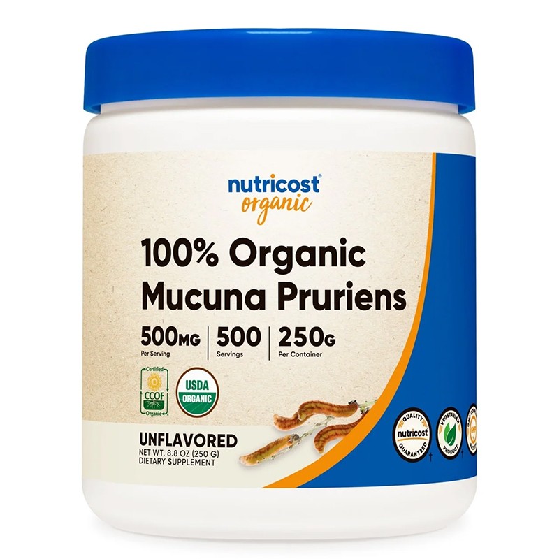 Една опаковка Mucuna Pruriens Organic, на Nutricost, предоставя цели 500 дневни дози, всяка, от която е източник на 500 мг семена на прах от билката. Подходяща за вегани. Не съдържа ГМО и глутен.