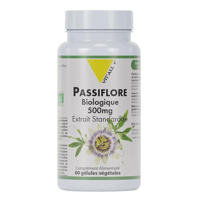 Vit’all+ органична Пасифлора 500 mg съдържа стандартизиран екстракт от Passiflora incarnata, богат на полифеноли, за оптимална физическа и психическа релаксация