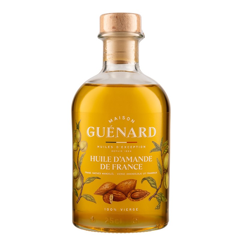 Huile d’Amande de France, произведено от най-качествени френски бадеми, впечатлява със своя богат вкус, копринена текстура и изтънчен аромат. Във Франция това масло е не само любимо на шеф-готвачите, но и неизменна част от домашната кухня. Френските домакини често го използват като завършващ финален щрих към печени зеленчуци, риба или бели меса, а също така го включват в емблематични десерти като тарталети с плодове или финансиери.