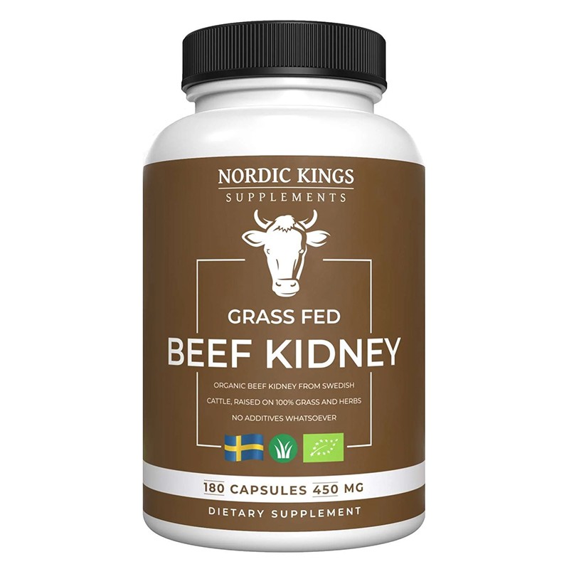 Grass Feed Beef Kidney (Organic) представлява хранителна добавка от био говежди бъбреци от хранени с трева животни, във вид на капсули. Всички добавки на Nordic Кings от органи са от 100% хранени с трева, шведски, органични и KRAV сертифицирани животни