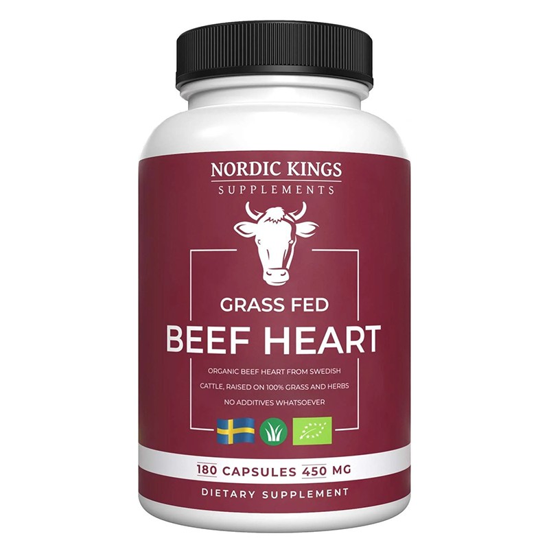 Grass Feed Beef Heart (Organic) представлява хранителна добавка от био говеждо сърце от хранени с трева животни, във вид на капсули. Всички добавки на Nordic Кings от органи са от 100% хранени с трева, шведски, органични и KRAV сертифицирани животни
