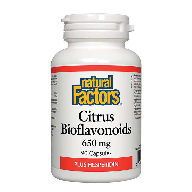 Цитрусовите биофлавоноиди във формулата на Natural Factors са получени от кората и пулпата на цитрусови плодове. Допълнително добавеният хесперидин – също биофлавоноид, открит в цитрусите, придава допълнителна антиоксидантна сила на продукта и осигурява съществени ползи в профилактиката и терапията на разширени вени и спукани капиляри.