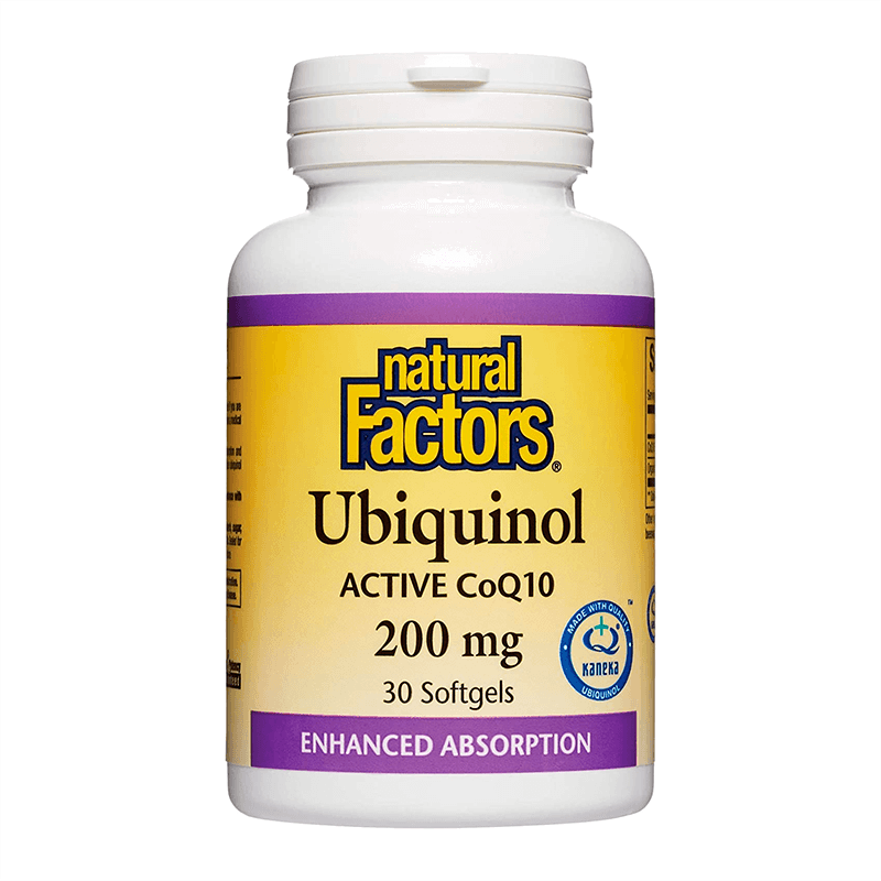 Убиквинол е мощен антиоксидант с жизненоважна роля за сърдечно-съдовото здраве, мозъчната дейност и неврологичните функции. Убиквинол е биологично активната форма на коензим Q10, която се произвежда и от човешките клетки. Има висока степен на усвояване и бързо действие в организма. Всяка капсула от продукта на канадската компания Natural Factors доставя 200 mg убиквинол, патентован от японската фирма Kaneka, която произвежда най-чистия и качествен коензим Q10. Убиквинолът в продукта е комбиниран с органично ленено масло, осигуряващо ценни за здравето мастни киселини омега-3, -6 и -9.