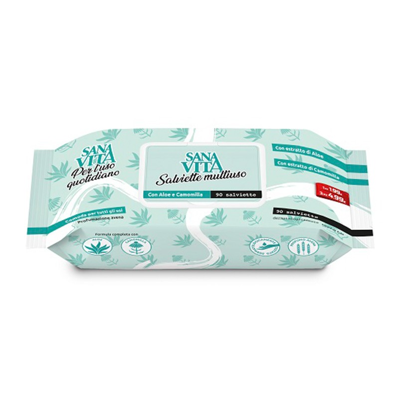 SanaVita Универсални мокри кърпички са практично и освежаващо решение за почистване на кожата по всяко време и на всяко място. Обогатени с екстракти от алое вера и лайка, те осигуряват нежна грижа, хидратация и успокояващ ефект, като същевременно ефективно премахват замърсявания и освежават.