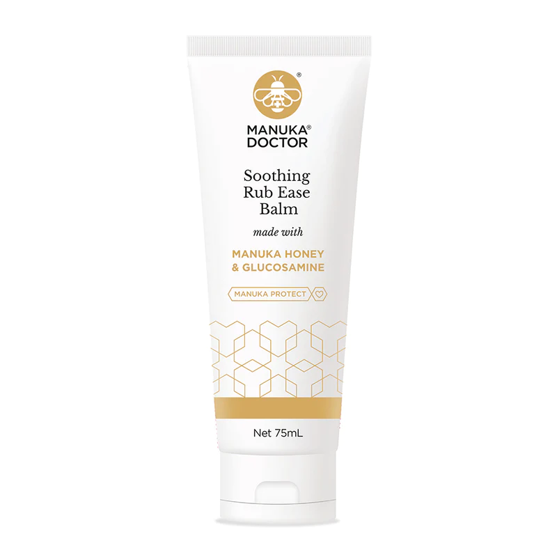 Soothing Rub Ease Balm Manuka Koney & Glucosamine е балсам на основата на пчелен мед от манука и глюкозамин, който успокоява напрежението и болката в ставите. Помага за нормалната функция на костите, хрущялите и мускулите. Има дълбок облекчаващ ефект при възпаления и отоци.