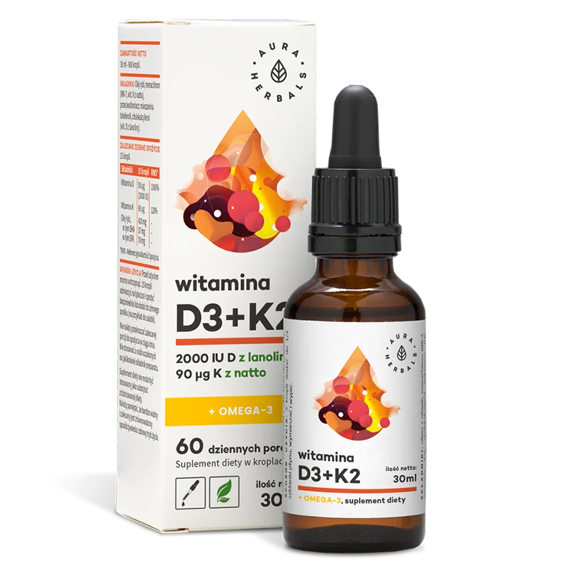 Витамин D3 + K2 + Омега-3 е хранителна добавка в течна форма, която съдържа оптимални дози Витамини D3 и K2, както и Омега-3 мастни киселини