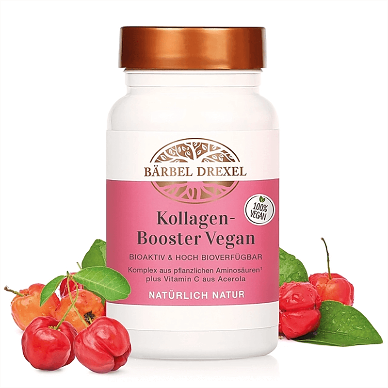 Продуктът на Bärbel Drexel осигурява биоактивен аминокиселинен комплекс, патентован като Vollagen® и осигуряващ 18 аминокиселини от растителни източници. Vollagen® е подсилен с богат на витамин С сок от ацерола на прах и манган (глюконат). За разлика от традиционните колагенови добавки, Kollagen-Booster не съдържа съставки от животински произход и е подходящ за всички, които се придържат към веганска или вегетарианска диета.