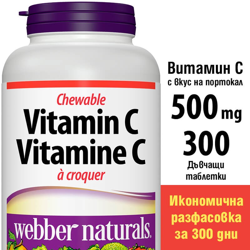 С хранителната добавка Vitamin C 500 mg Chewable на канадската компания Webber Naturals приемът му е приятен като детска игра. Тези дъвчащи таблетки са вкусни, не горчат и носят приятния цитрусов аромат на свеж портокал. И не на последно място – бързо се абсорбират, действат веднага и не дразнят стомаха.