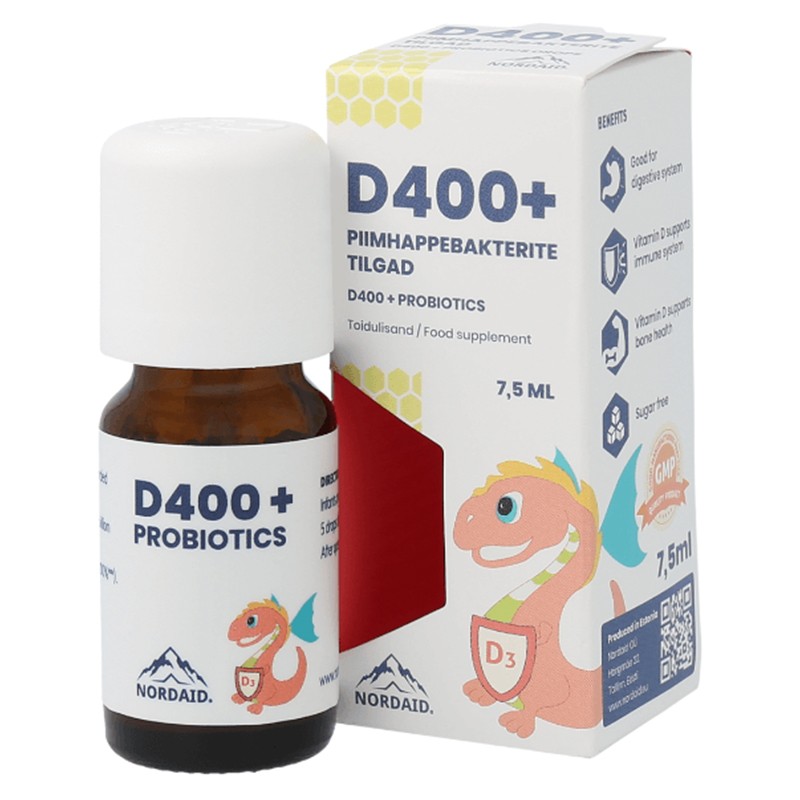 Витамин D3 400 IU + пробиотици – Имунитет и храносмилателна система, Капки за деца и възрастни, 7.5 ml