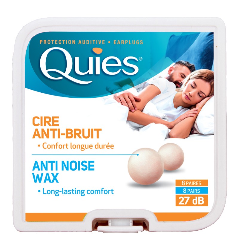 Тъй като са направени от естествен восък, тапите за уши Quies се затоплят до температурата на тялото и леко поддържат лигавицата на ушния канал. Те са изключителни удобни, тъй като са пластични и отговарят на уникалната форма на всяко ухо. Тапите за уши от естествен восък Quies са идеални за продължително носене. Изработени са от минерални восъци и хипоалергенен памук. Нишките естествен памук задържат тапата в ухото и не ѝ позволява да изпадне, ако восъкът се размекне прекалено от телесната температура. Восъчните тапи предпазват от шумови атаки, без да изолират напълно от околната среда и да пречат на ежедневието. Тези тапи за уши спокойно могат да се определят като най-удобните за носене, тъй като не трият и не нараняват стените на ушния канал. Опаковката съдържа 8 чифта тапи за уши в пластмасова кутия. Всяка тапа е във формата на малко топче и е обвита с памук, за да не се слепва с другите.