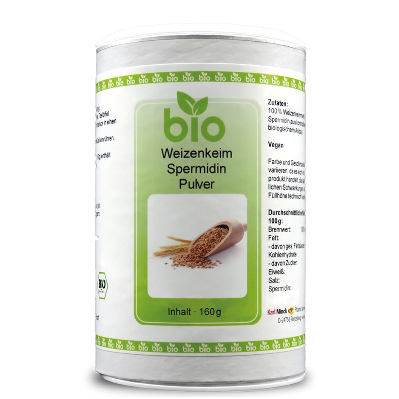 Спермидин е полиамид, който се извлича от пшеничния зародиш. Той е мощен антиоксидант, който благоприятства естествените биологични процеси в тялото. Действа на клетъчно ниво като подобрява обновяването на клетките, вътреклетъчния обмен и регенерирането на нови клетки в организма. Освен това спермидинът изчиства и подхранва по естествен начин организма, детоксикира тялото и спомага за извеждането на токсините. Приемът му подобрява паметта и концентрацията, спомага за увеличаване на двигателната активност и за обмяната на веществата в организма.
