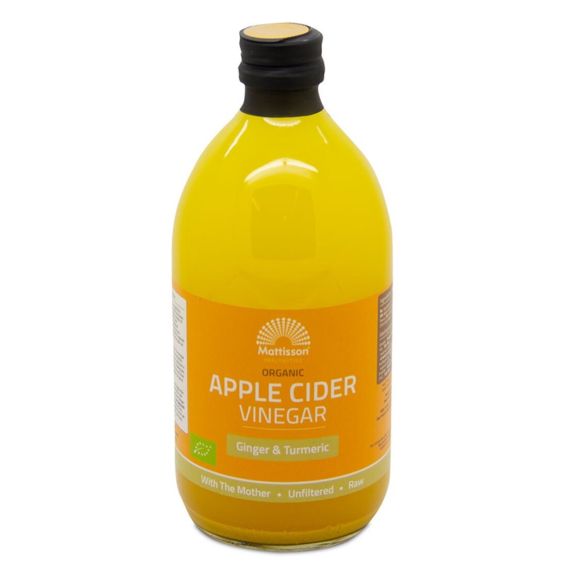 Тя изглежда като утайка и придава малко мътен цвят на оцета. Добавянето на джинджифил, куркума и натурален аромат на люти чушки към ябълковия оцет осигурява допълнителна пикантност и здравословни ефекти. Куркумата има тръпчив и леко горчив вкус и е основна подправка в индийските ястия. Тя е с противовъзпалителни свойства и е подходяща при храносмилателни проблеми. Джинджифилът става все по-популярен като лечебно средство и кулинарна подправка. Богат е на етерични масла и много антиоксиданти с редица полезни за здравето свойства. В този ябълков оцет няма изкуствени добавки.