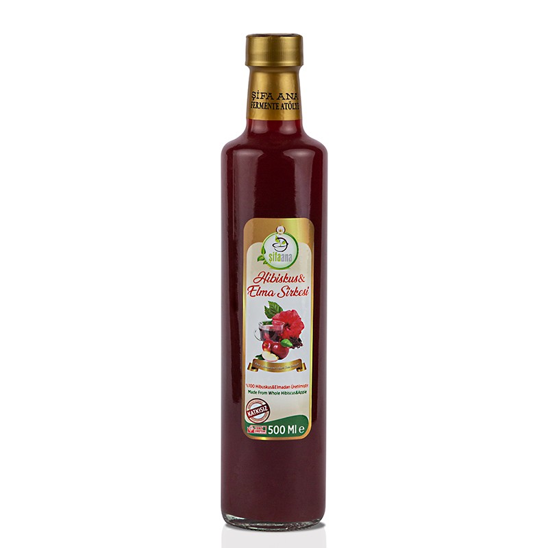 Този продукт представлява ябълков оцет, в който са добавени цветове от хибискус. Хибискусът придава на оцета красив червен цвят и допълнителни полезни свойства, сред които подобряване на храносмилането, детоксикация на организма, подсилване на имунитета и други.