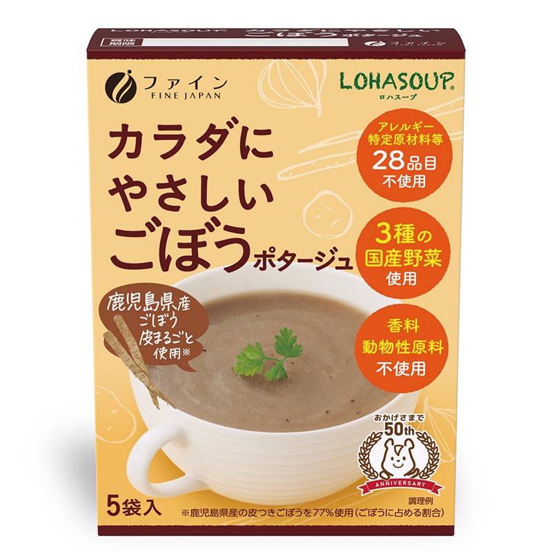 Основната съставка – корен от репей (burdock) е известна със своите детоксикиращи и антиоксидантни свойства. Тя подпомага храносмилането и благоприятства метаболизма. В комбинация с картофено и оризово брашно, супата се отличава с кадифена текстура и естествена сладост, а екстрактът от мая и бял пипер придават наситен умами вкус и фин пикантен акцент.