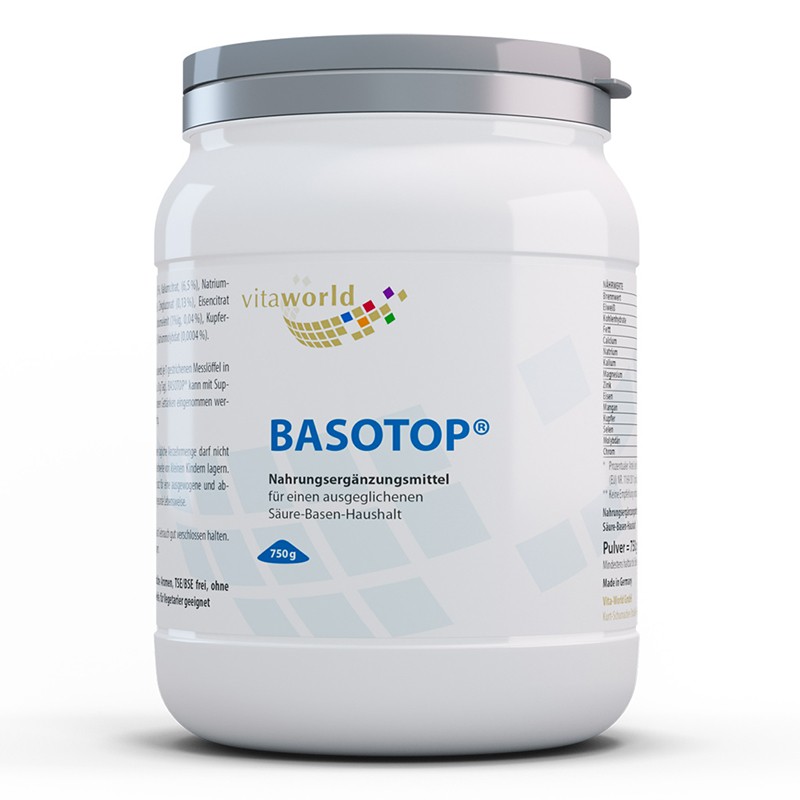 Basotop е продукт, специално създаден да регулира киселинно-алкалния баланс в организма. В комплекса са включени калций, калий, натрий, магнезий, цинк, желязо, манган, натриев селенит, натриев молибдат, мед и хром